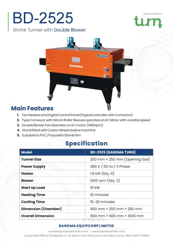 BD-2525 (BANDMA TURN) Shrink Tunnel with Double Blower