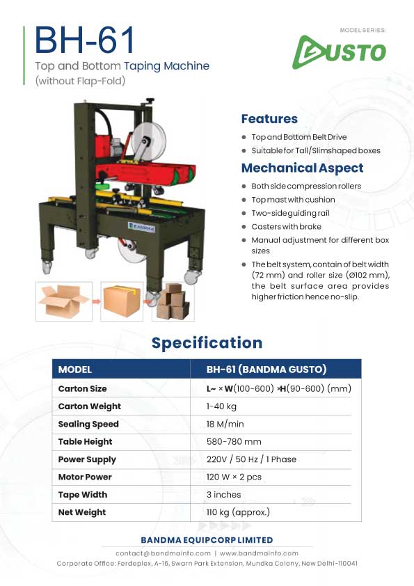 BH-61 (GUSTO) Top and Bottom Taping Machine without flap-folding