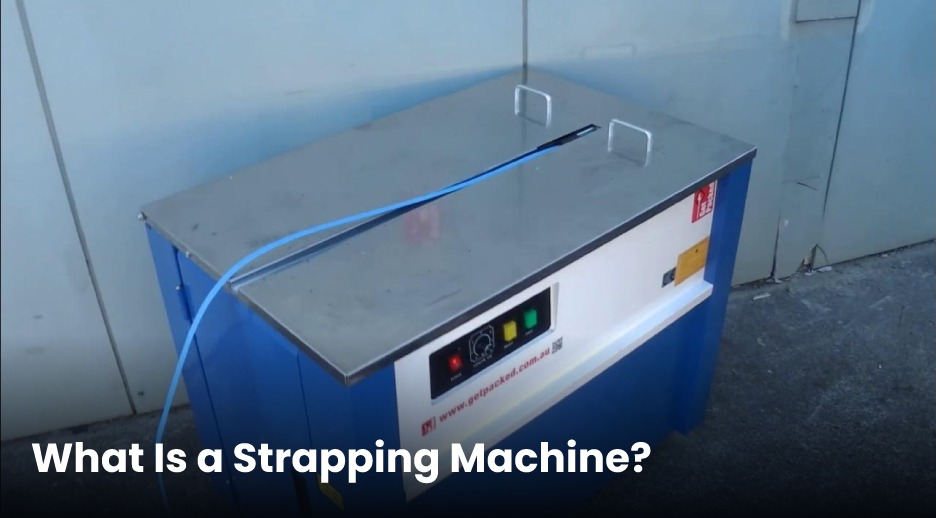 A strapping machine is a packaging device that secures bundles, boxes, or pallets using a plastic or steel strap. The strap wraps around the product or package to hold it tightly in place during handling, storage, or transportation.